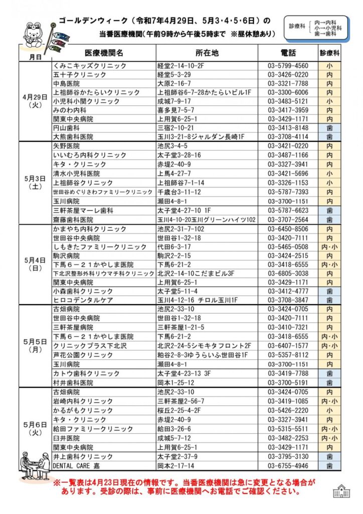 世田谷区医師会初期救急診療所 (03-5301-0899) 松原6-37-10 / 小児科・内科