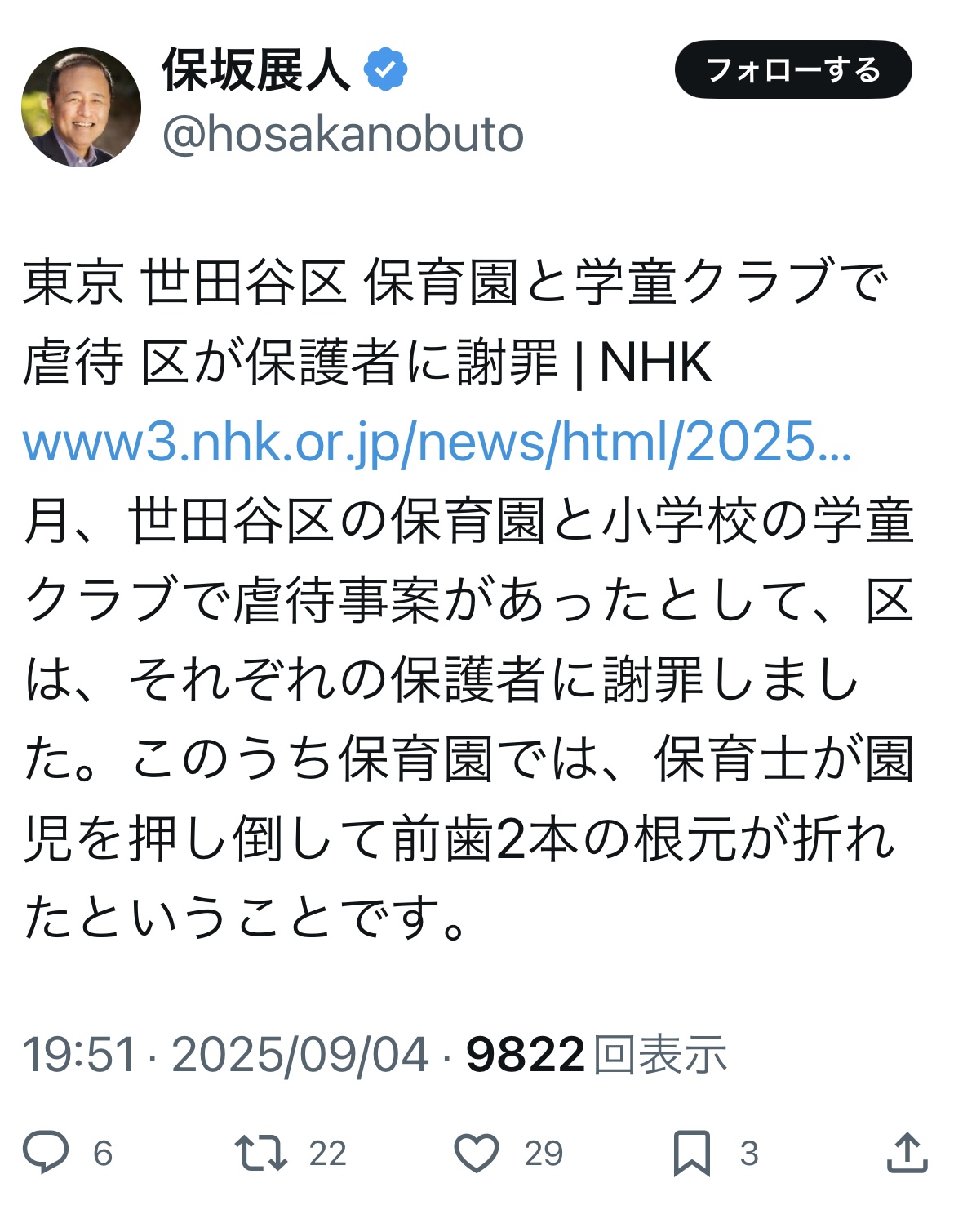 Home › › IMG_9621 2025-09-04 IMG_9621 Tweet Pocket Tweet Pocket 関連記事 オリンピック選手の「すごい!」話 「梅毒」の患者数が激増しています。2016年の患者報告数は都内1,673人で過去最多。大流行しているという状況です。 桃野は「区民生活委員会の副委員長を降りる」会派は「代表質問ができない」ということに。会派メンバー異動のご報告。 世田谷区長の新型コロナ対策。4億円ものお金をかけて、意味のないことをやってはいけない。 はっきり言って、これでは公金を預かる立場での仕事とは到底思えません 今度は保育園での虐待。園児は前歯2本が根元から折れる大怪我。 コメントを残す コメントをキャンセルメールアドレスが公開されることはありません。 ※ が付いている欄は必須項目ですコメント ※ 名前 メール サイト 次回のコメントで使用するためブラウザーに自分の名前、メールアドレス、サイトを保存する。 Δ