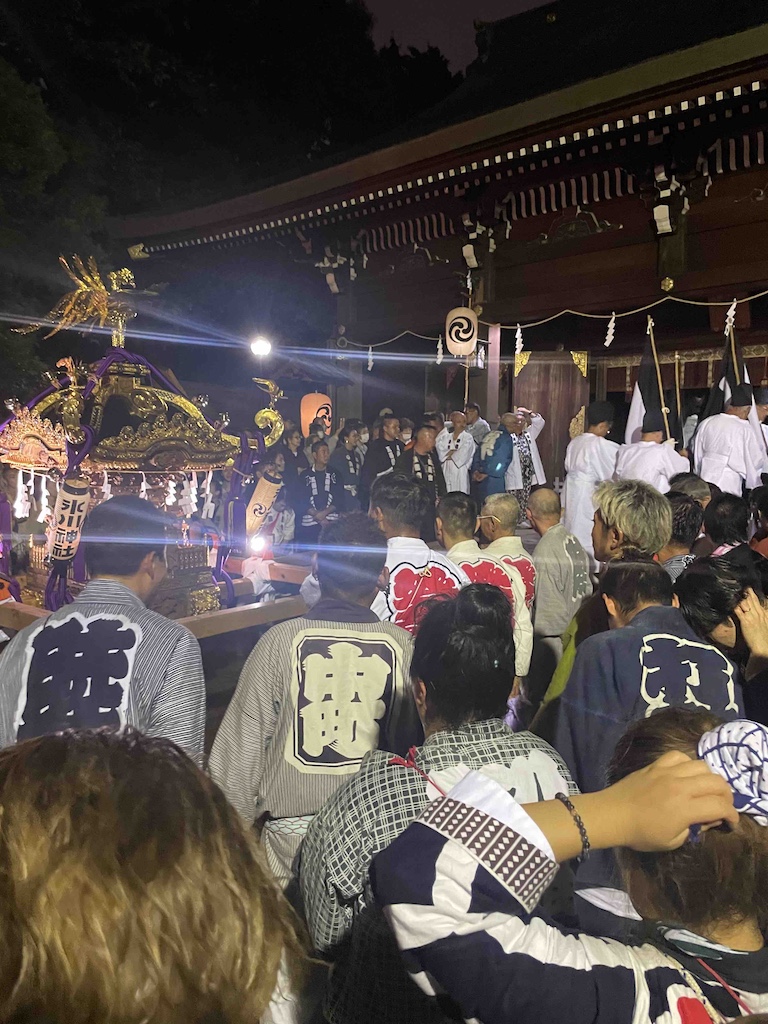 そして、日が暮れてからはお神輿に灯りがついて一層美しい。宮入りに向けて盛り上がっていきます。