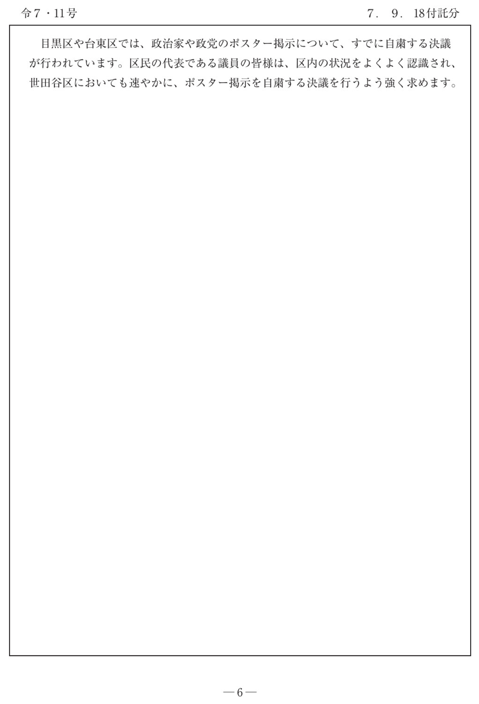 Home › › スクリーンショット 2025-11-04 21.51.33 2025-11-04 スクリーンショット 2025-11-04 21.51.33 Tweet Pocket Tweet Pocket 関連記事 行政が公益通報者保護制度に対して全くの不知であることに怒りを禁じ得ません えっ?!これが教育大綱(素案)。中学生の作った文章ではありません。68歳にもなる保坂展人世田谷区長の作った行政文書です。まるでポエム。 桃野ブログに3度目登場の今村雅弘復興大臣。最後は「辞任」の結果。「やっぱり、こうなったか・・・」と思ってしまう。 犯人が強い意志を持って、犯行を遂げようとすれば、それを妨げるのは非常に難しい。改めて突きつけられる事件です。 野党三党が「学校給食無償化法案」提出へ。衆議院では可決される可能性もあります。 「政治家や政党が、コインパーキングの壁や自動販売機等にベタベタポスターを貼るのはやめてほしい」との陳情 コメントを残す コメントをキャンセルメールアドレスが公開されることはありません。 ※ が付いている欄は必須項目ですコメント ※ 名前 メール サイト 次回のコメントで使用するためブラウザーに自分の名前、メールアドレス、サイトを保存する。 Δ