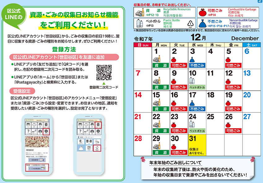 また、世田谷区公式アカウントには資源・ごみの収集日お知らせ機能がありますので、こちらも是非ご活用下さい。