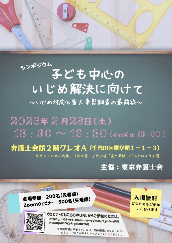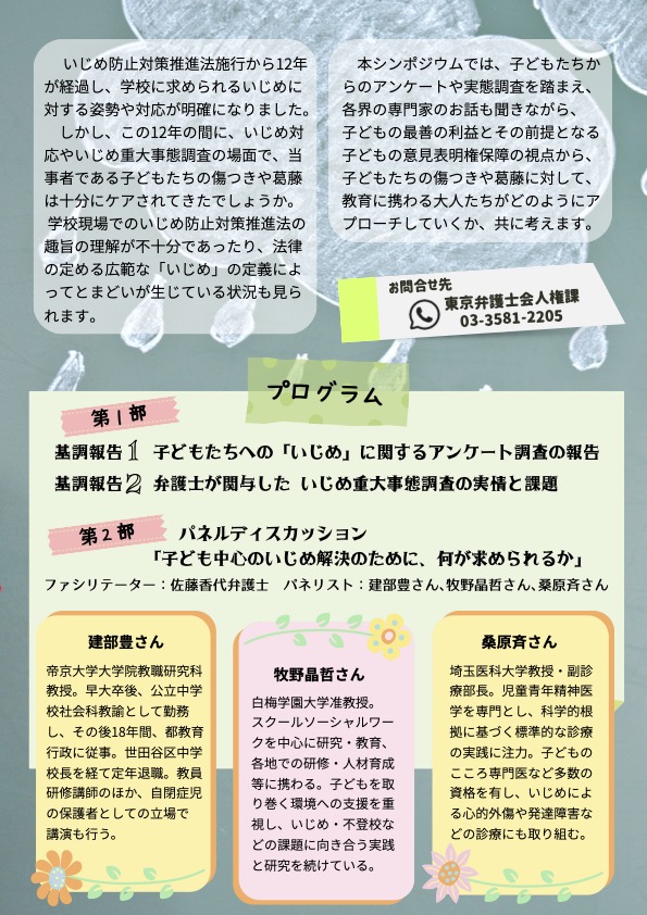 【シンポジウム・子ども中心のいじめ解決に向けて】参加無料です