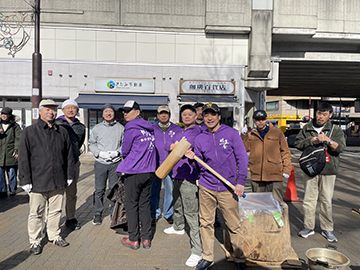 地元「明正おやぢの会」の有志メンバーで参加していました。こちら、おやぢの会の皆さん。寒い朝でしたが午前10時に喜多見駅前に集合。