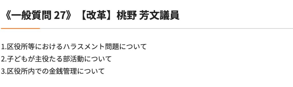 ということで、質問内容は事前に明らかになっておりそれは区議会のホームページで公開されています。