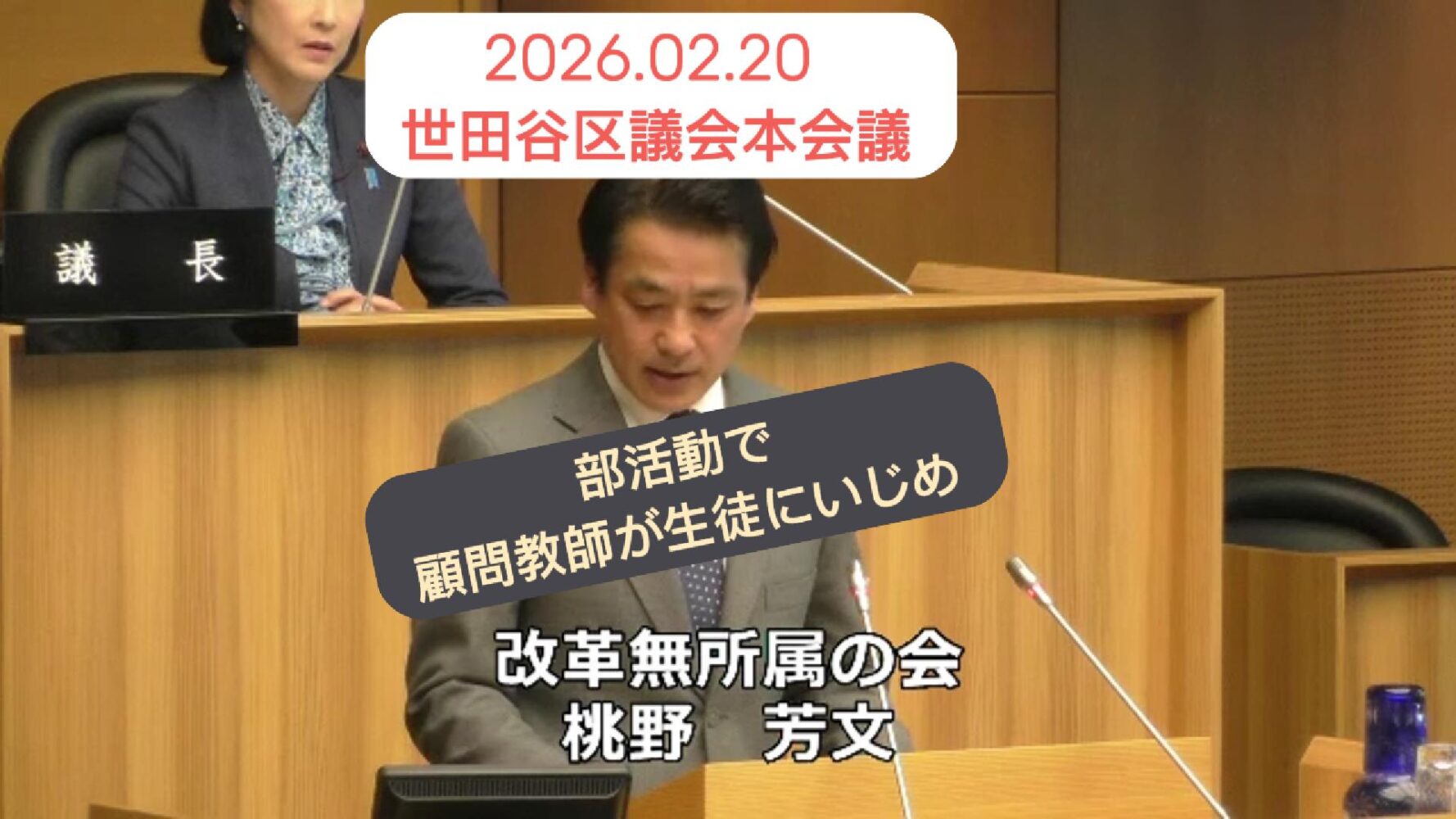 世田谷区議会議員、桃野芳文です。 世田谷区議会本会議3日目。本日、桃野は一般質問を行いました。 今回のテーマは以下3つ。 1)区役所等におけるハラスメント問題について 2)子どもが主役たる部活動について 3 … 続きを読む 区立中学校の部活動で教師が生徒に「いじめ」。これは許されない!
